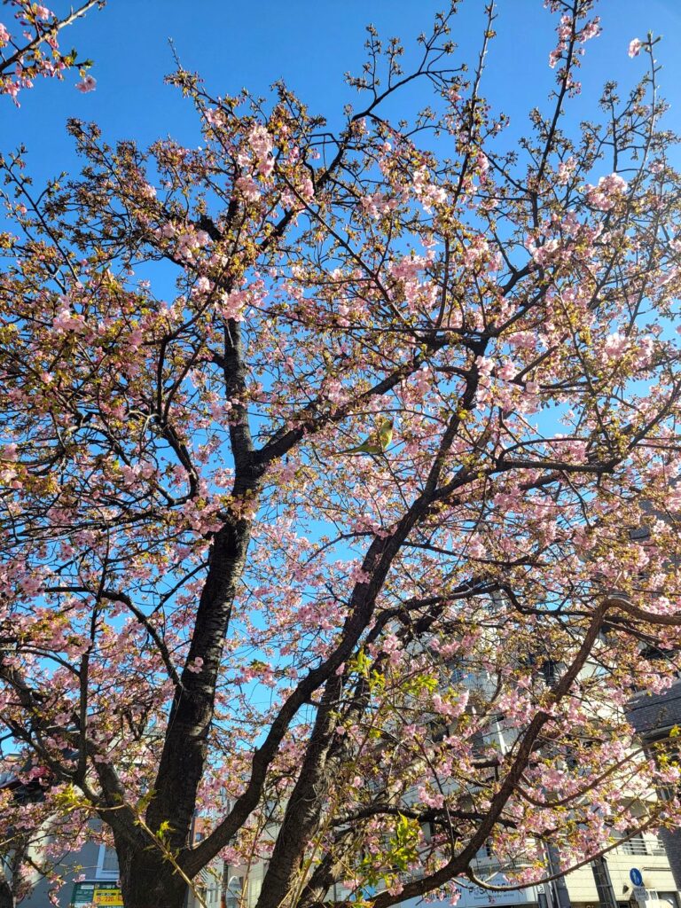中野区 新江古田 総合東京病院前 寒桜と野生化したワカケホンセイインコ 2026年2月21日(土)